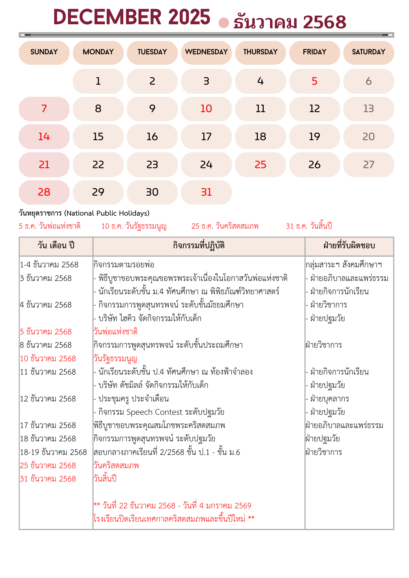 กิจกรรมต่าง ๆ ภายในโรงเรียน